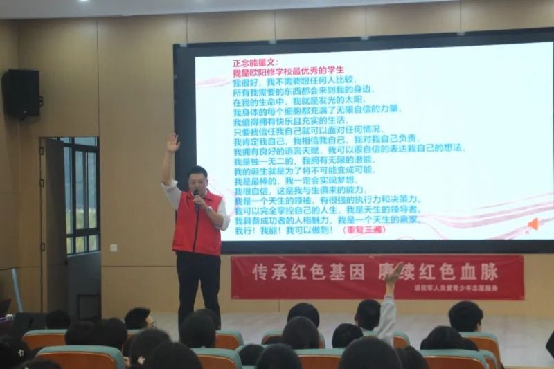 “你的頸部越來越硬!”活動(dòng)接近尾聲,方雷老師帶領(lǐng)全體同學(xué)齊聲誦讀能量文:“我相信!我能行!我可以!”響亮的誓言在音樂的伴奏下猶如戰(zhàn)鼓之聲,激勵(lì)學(xué)生們勇敢追求自己的夢(mèng)想。
