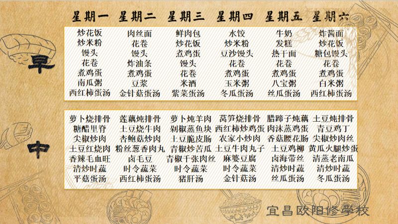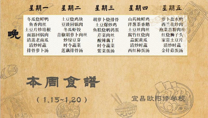 宜昌歐陽修學(xué)校每周食譜(1月15日至1月20日)
