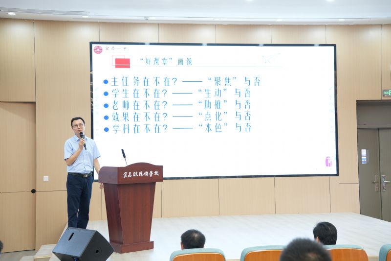 好教師與好課堂相互成就。宜昌市一中高皓校長以具體教學實例來創(chuàng)設(shè)真實情景,為老師們打開了一扇通往教育實踐的大門。就如何成為好教師,如何打造好課堂,高校長以概念講解(申論與議論文)為例,指出:“好老師”的共性在于他們會激發(fā)學生學習,他們認為該給學生的主要獎勵就是滿足感和成就感。而“好課堂”應(yīng)當從主任務(wù)、學生、老師、效果和學科五個角度進行審視與評價。這些觀點引發(fā)了老師們的強烈認同,會場上氣氛熱烈,掌聲連連!