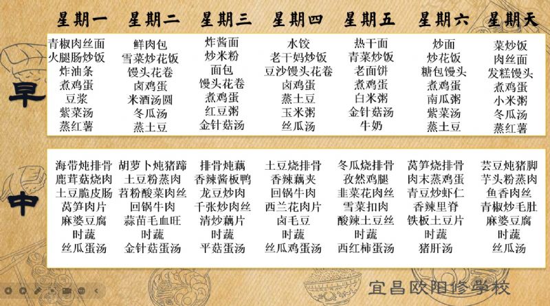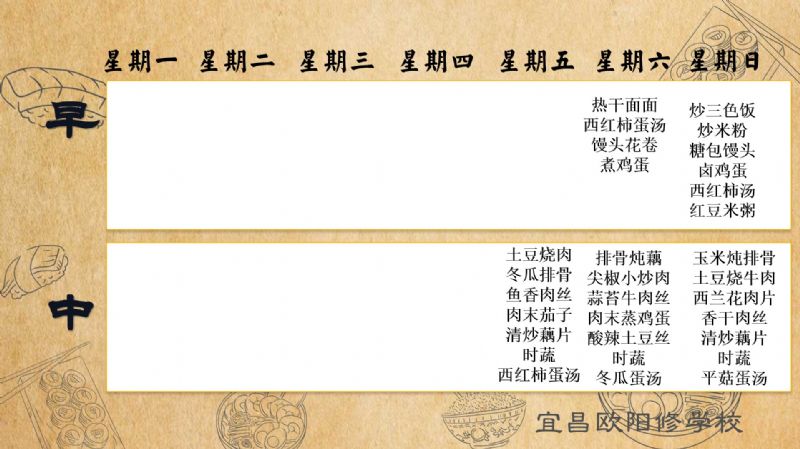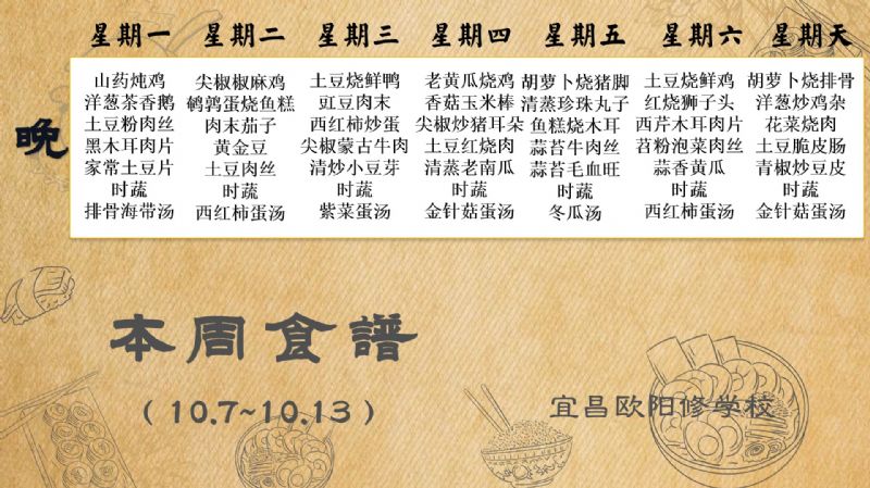 宜昌歐陽修學(xué)校每周食譜(10月4日至10月13日)