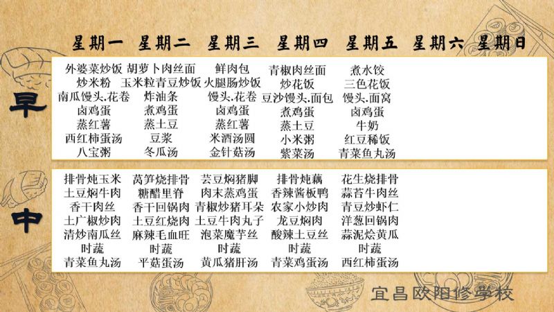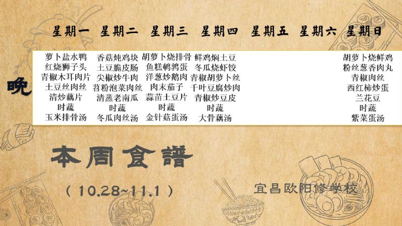 宜昌歐陽修學(xué)校每周食譜(10月28日至11月1日)