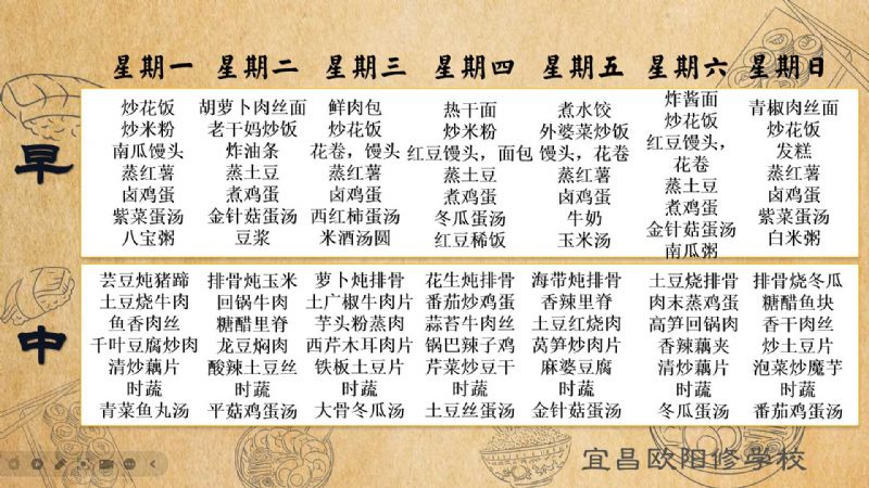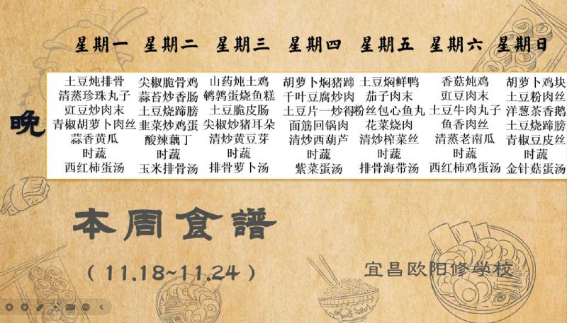 宜昌歐陽修學(xué)校每周食譜(11月18日至11月24日)