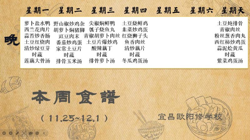 宜昌歐陽修學(xué)校每周食譜(11月25日至12月1日)