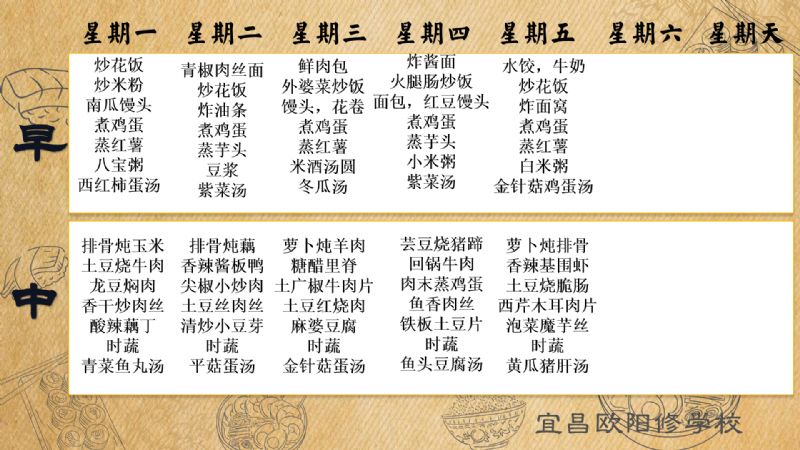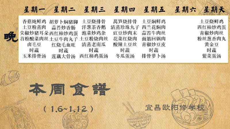 宜昌歐陽修學(xué)校每周食譜(1月6日至1月12日)