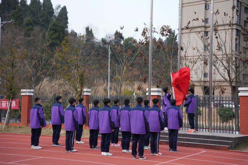 伴隨著激昂有力的《義勇軍進(jìn)行曲》,國旗班的同學(xué)們身著整潔的制服,身姿挺拔如松,步伐矯健有力。升旗手目光堅毅,雙手緊握國旗一角,隨著國歌激昂的旋律,奮力將國旗高高揚起,恰似燃燒的火炬,瞬間點燃了在場每一個人心中奮進(jìn)的火種,驅(qū)散慵懶,喚醒朝氣。