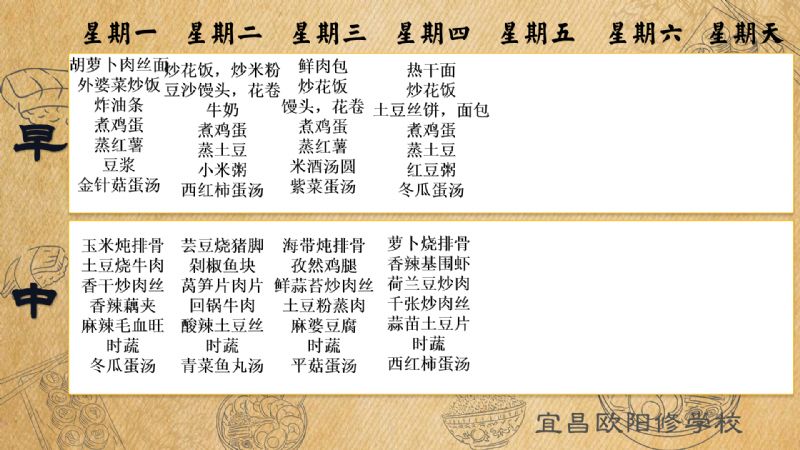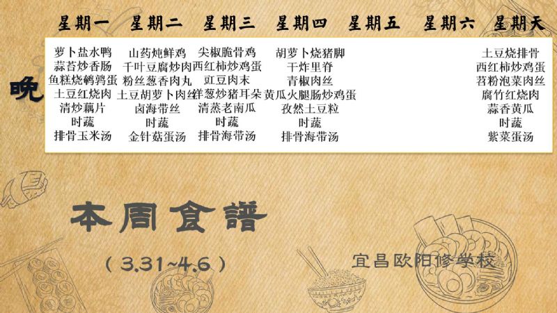 宜昌歐陽修學校每周食譜(3月31日至4月6日)