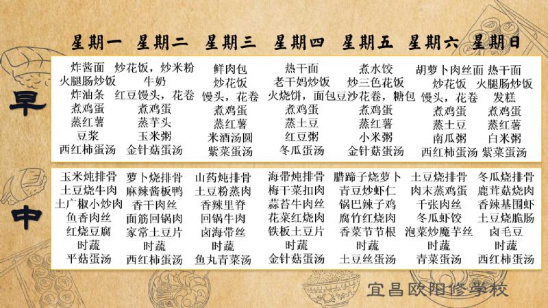 宜昌歐陽修學(xué)校每周食譜(4月7日至4月13日)