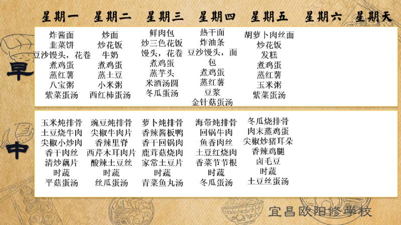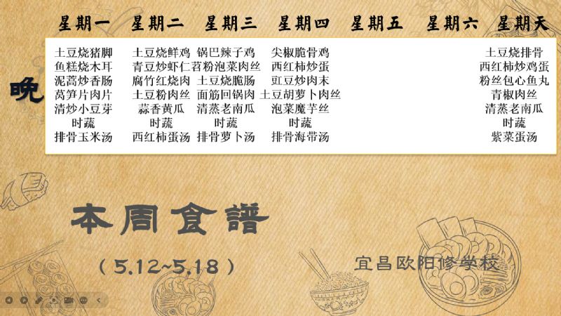 宜昌歐陽修學(xué)校每周食譜(5月12日至5月18日)