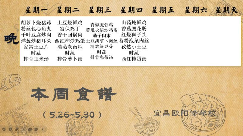 宜昌歐陽修學校每周食譜(5月26日至5月30日)