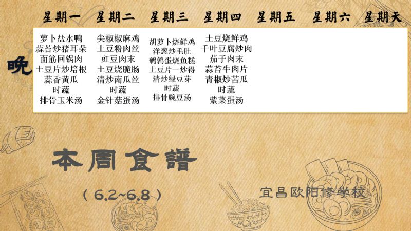宜昌歐陽修學校每周食譜(6月2日至6月8日)