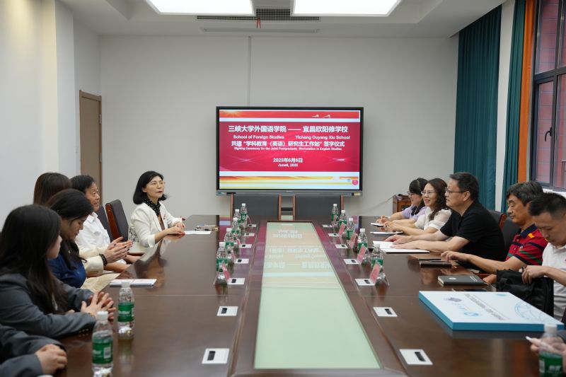雙方在三樓會(huì)議室隆重舉行簽約儀式暨合作座談會(huì)。三峽大學(xué)外國(guó)語(yǔ)學(xué)院院長(zhǎng)席敬教授率代表團(tuán)出席,成員包括學(xué)院黨政辦主任余征、英語(yǔ)系主任劉君紅、學(xué)院科研辦科長(zhǎng)葉芳以及宜昌英語(yǔ)協(xié)會(huì)秘書(shū)長(zhǎng)李志坤等。會(huì)上,雙方圍繞研究生工作站的建設(shè)規(guī)劃、運(yùn)行機(jī)制及未來(lái)發(fā)展等議題進(jìn)行了深入交流與探討。
