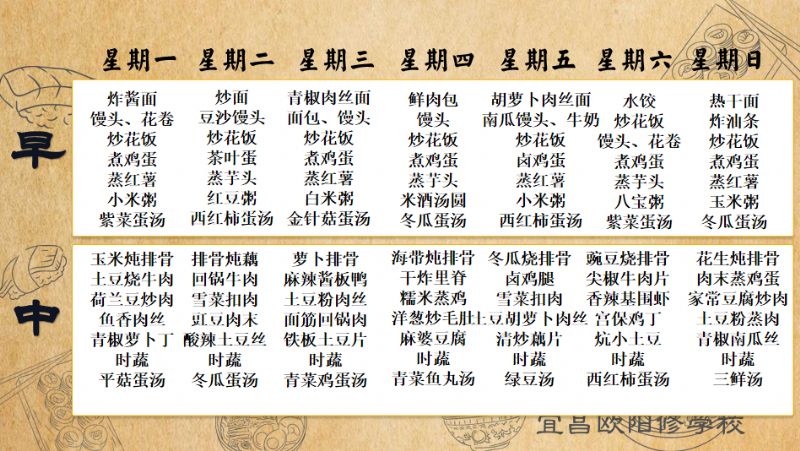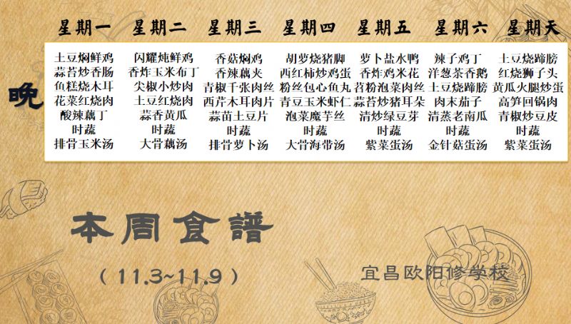 宜昌歐陽(yáng)修學(xué)校每周食譜(11月3日-11月9日)